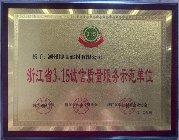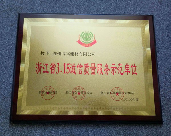 浙江省3.15誠信質(zhì)量服務(wù)示范單位